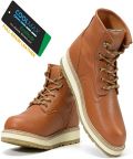 【Solid GoodYear Welt Construction】Are you looking for a pair of solid work boots that can last a long-term use? These wedge boots are built with goodyear welt construction, so they’re durable enough to hold up to the rigger of hard labor. The premium thick leather of the men boots are pretty sturdy and waterproof, so your feet will always keep dry while you work. ►All work boots provide 90-day warranty.