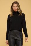 Brushed Knit Black Cowl Neck Long Sleeve Top - BLACK