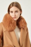 Double-faced cashmere and wool blend fabric with detachable premium fox-fur collar and cuffs.