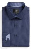 Dot 4-Way Stretch Slim Fit Dress Shirt - Navy