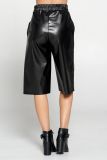 Made in USA Black Faux Leather Wide Leg Culotte Pants.
