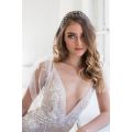 Our simple yet modern faux pearl double headband designed to be worn on the crown will make a statement on your special day.