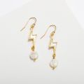 It's electric! Check out these gold plated mother of pearl lightning bolts n' beads. They're 1 3/4" long hanging from 14k gold filled earwires - perfect for a party or just some popcorn and a movie.