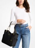 Destined to go places, this Saffiano leather Jet Set shoulder bag will lend architectural flair to everyday looks. Convenient side pockets and a secure top-zip fastening render this carryall the perfect travel companion, while a spacious interior boasts more than enough room for your daily essentials.