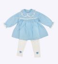LEEZ Girls 2-Piece Set Lace-Trim Dress & Leggings Blue
