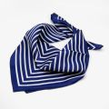 LEEZ Blue & White Stripe Print Square Silk Scarf