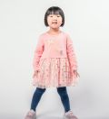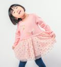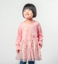 LEEZ Girls Cartoon Birds Printed Long Sleeve Dress Lace Skirt Pink