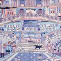 LEEZ La Palace Bleu Print Square Silk Scarf