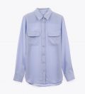 LEEZ Women Mulberry Silk Shirt Light Blue