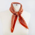 LEEZ Pumpkin & White Stripe Print Square Silk Scarf