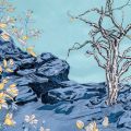 LEEZ Tree On The Rock Print Square Silk Scarf - Noir