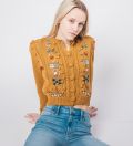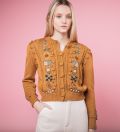Round neck Long sleeves Floral patterns Front button closure 71%-80% cotton, 10%-29% wool Imported