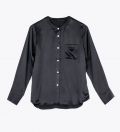LEEZ Women Long Sleeve Mulberry Silk Blouse - Black