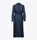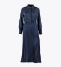 LEEZ Women Long Sleeve Pleated Shirt Dress - Navy