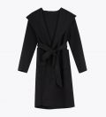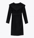LEEZ Women Wool-Cashmere Hooded Overcoat Black