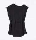 LEEZ Women Sleeveless Belted Silk Blouse Black