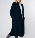 LEEZ Women Triacetate Mid-length Belted Trench Coat - Navy
