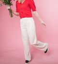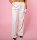 LEEZ Women Chenille Wide-Leg Mop Pants White