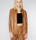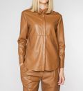 LEEZ Women Leather Shirt Jacket - Camel