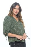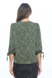 Made in USA Abstract Print V neck Top with Self Tie Sleeves