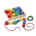 Thirty wooden beads in six vibrant colors and five distinct shapes combine with two extra-long laces for many activities. Stringing the easily grasped beads promotes hand-eye coordination, fine motor, cognitive and visual perception skills.