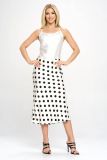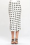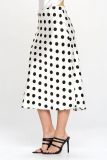 Made in USA Polka Dot Satin Midi Skirt. Fabric content: 97% Polyester, 3% Spandex. Available in other Colors.