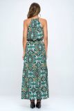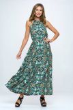 Made in USA Print Halter Neck Dress. Fabric content: 100% Polyester.