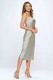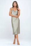 Satin Bias Midi Dress with Criss Cross Back - SAGE