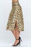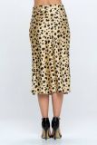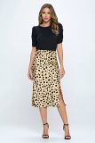Satin Leopard Print Midi Skirt with Slit - TAUPE/BLACK