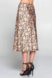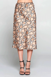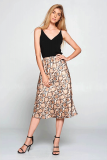 Satin Snake Print Midi Skirt. Fabric content: 97% Polyester, 3% Spandex. Made in USA.