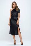 Stretch Satin One Shoulder Dress - BLACK