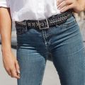 Fishtail your way into this silver studded belt. When your night out on the town could use a little spark, this unique studded leather design is just what the stylist in you has been looking for. Dress up any look with this fashionable belt stacked with various kinds of studs & a square buckle.