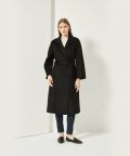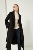 Our classic warp coat features wide-notch lapels and an adjustable self-tie waist. Hand-sewn from our signature water wave double-faced cashmere, this coat has an oversized fit.