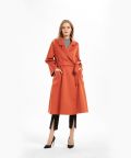 Our classic warp coat features wide-notch lapels and an adjustable self-tie waist. Hand-sewn from our signature water wave double-faced cashmere, this coat has an oversized fit.
