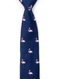 Did you know Flamingos sleep standing up on one leg? This and other useful knowledge nuggets will come naturally when you don our Blue Flamingo Tie, Yo-Yo. The pink flamingos evenly spaced across the navy background will induce compliments wherever you soar. Just like a Flamingo’s wings Yo-Yo is totally water-proof repelling even the worst of spills. Stand out from the crowd with Yo-Yo. Available in skinny tie width (2.5”) or traditional width (3.25”). Matching Yo-Yo Socks Yo-Yo - Blue Pink Flamingo Tie - Tough Apparel "